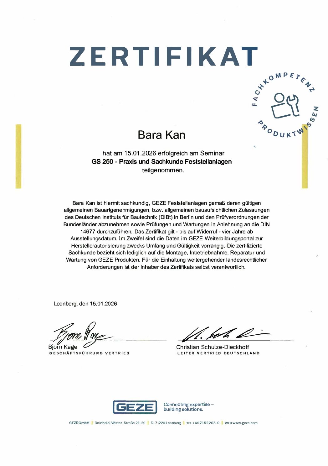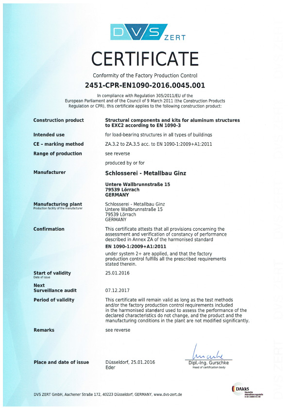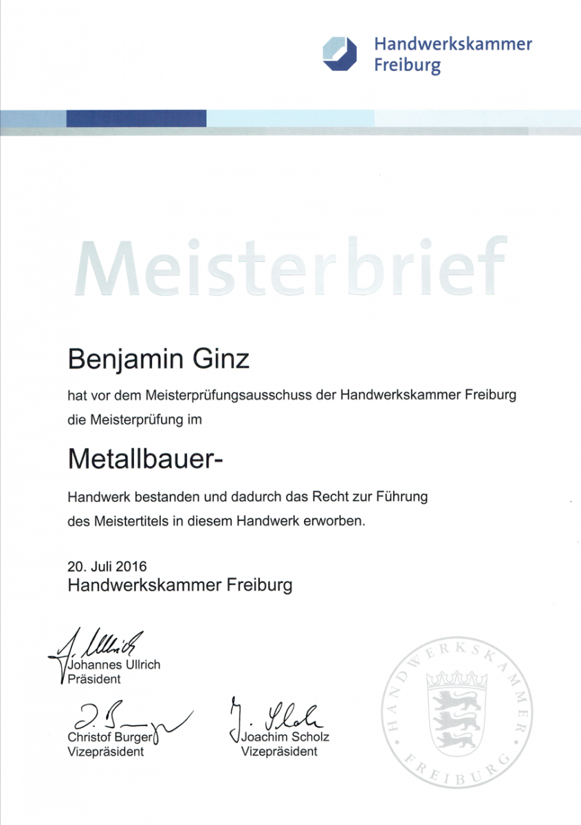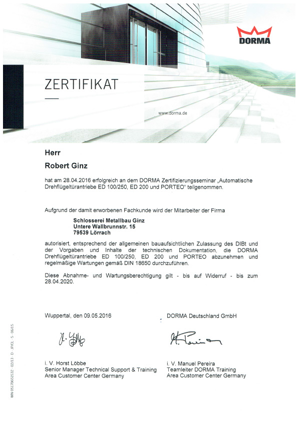 SCHLOSSEREI GINZ | Zertifikate